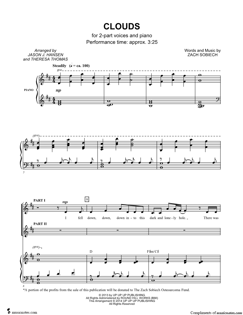 Many of the arrangements on Musicnotes have transpositions available, typically in C Major, as well as 3 sharps and 3 flats. If you do not see your desired key, you can request a transposition by reaching out to Customer Support.